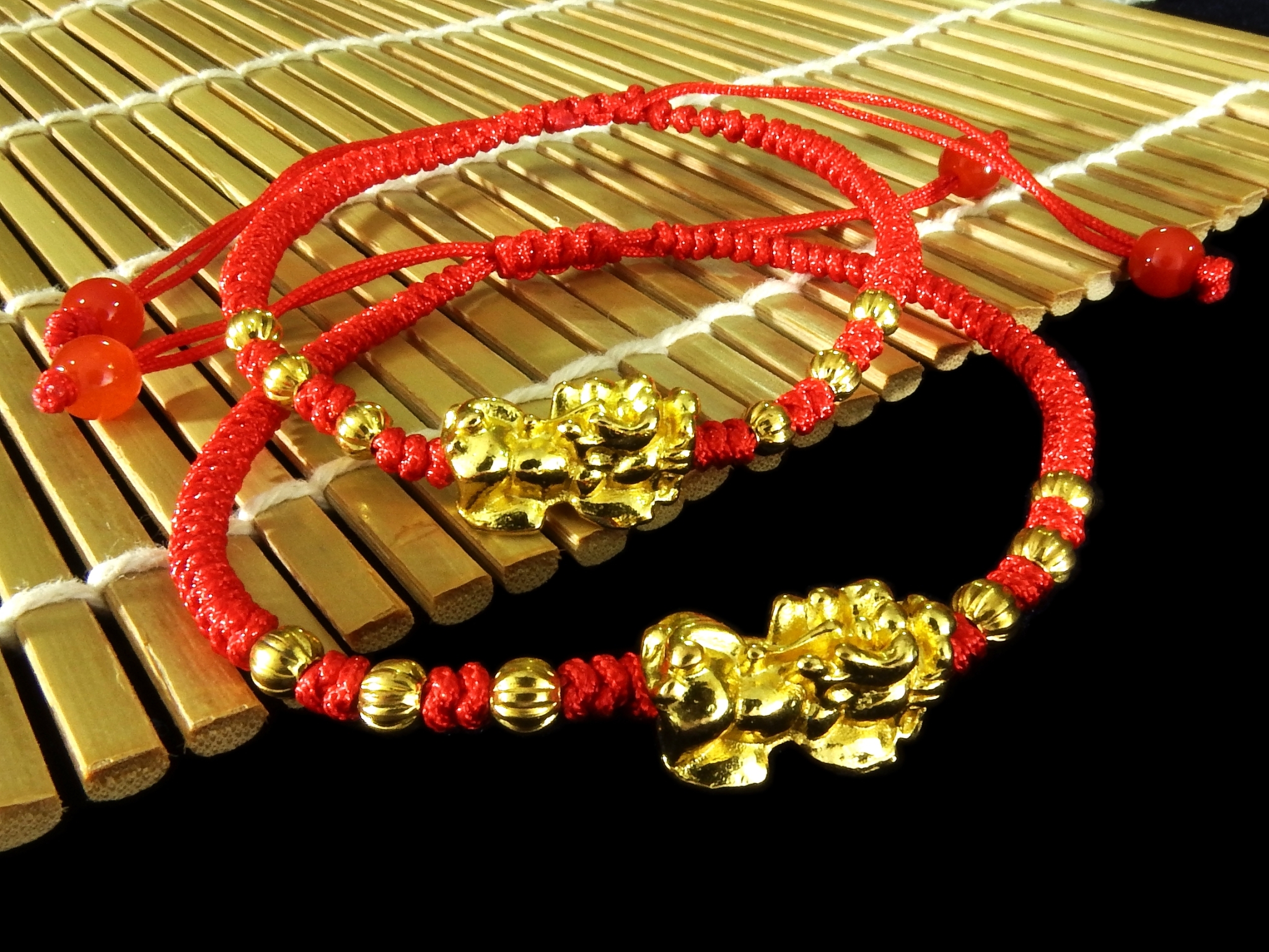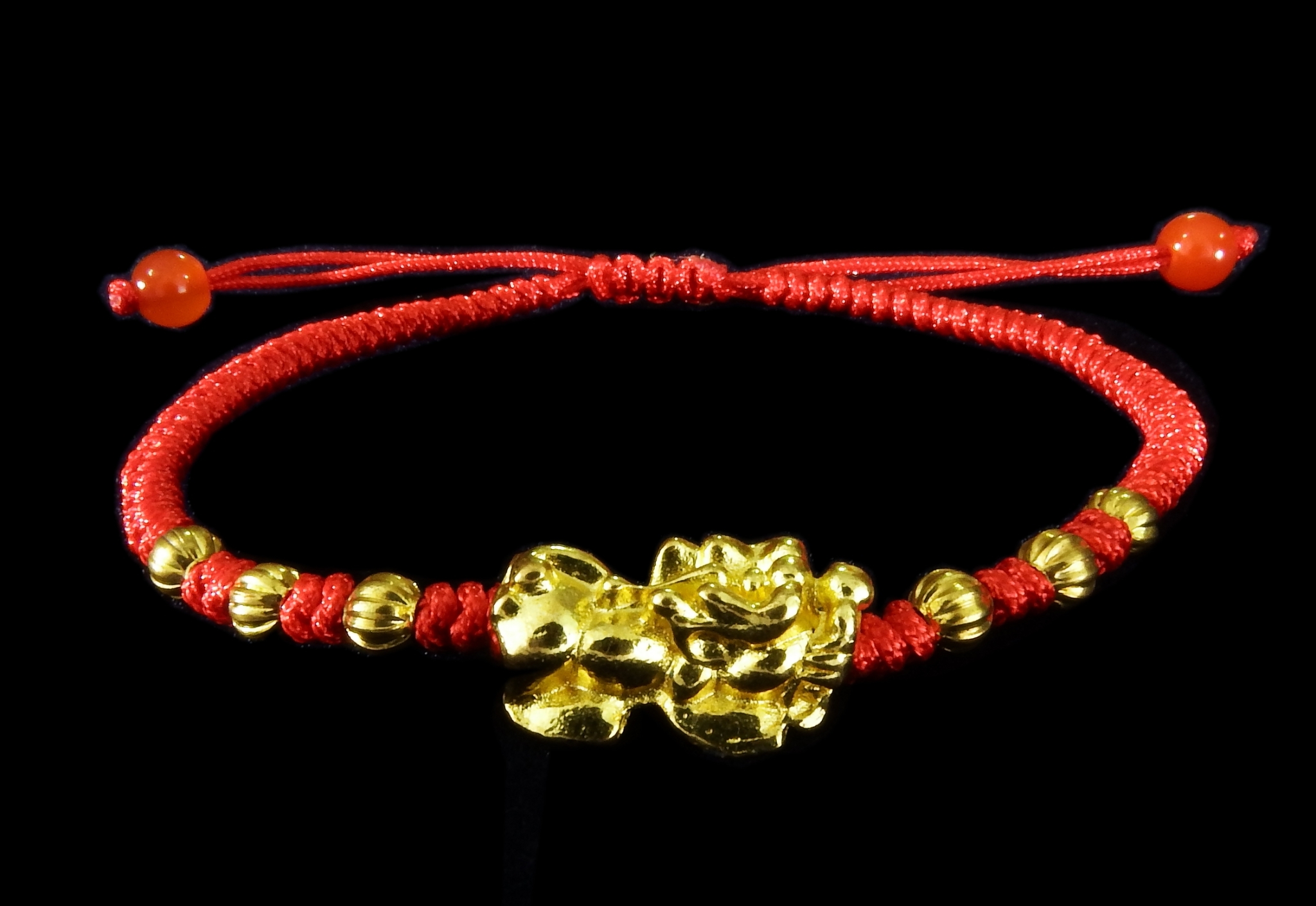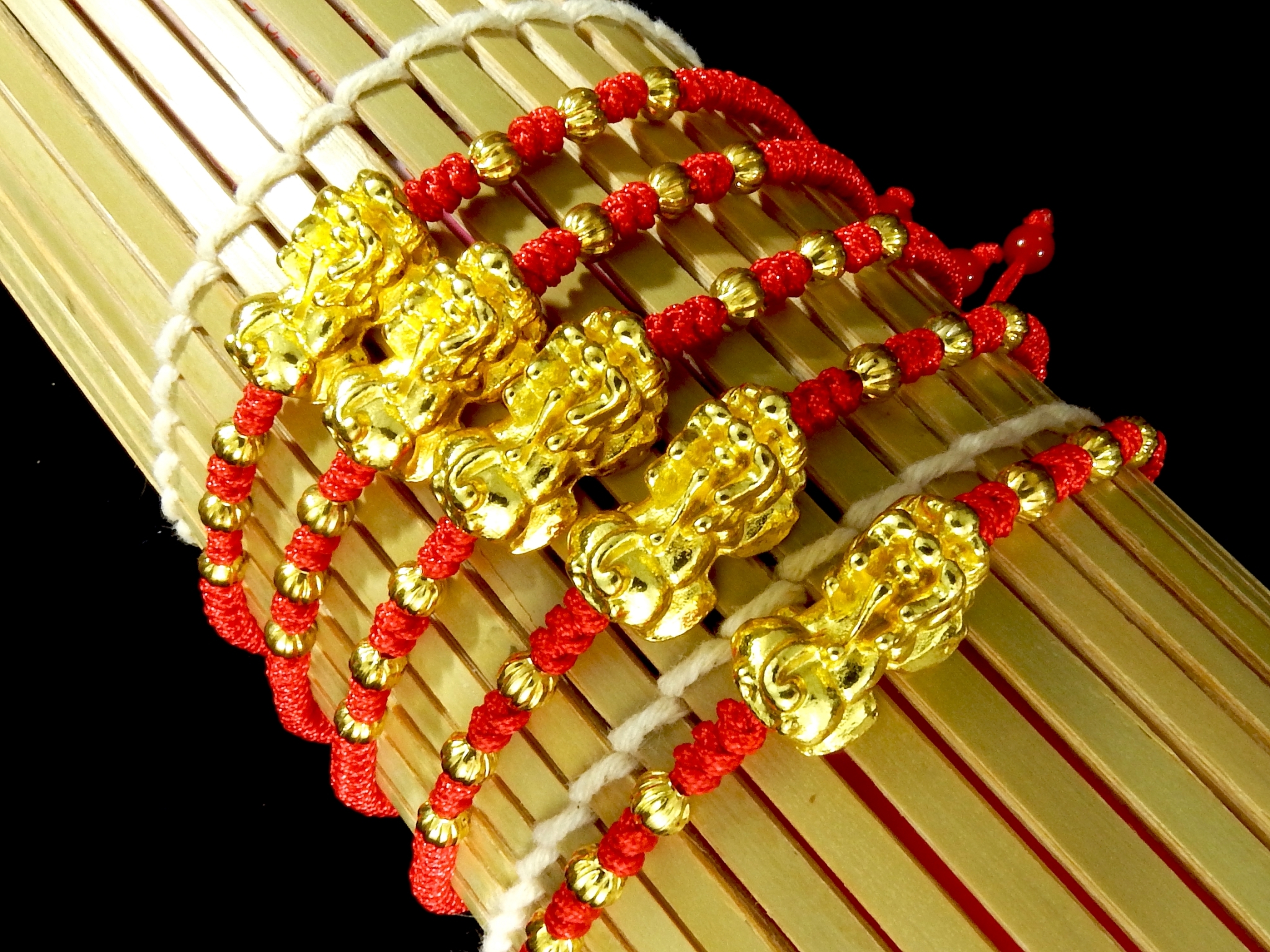 กำไลข้อมือ"ปี่เซี๊ยะ"เชือกแดง ทอง 18k. นำเข้าจากฮ่องกง/พร้อมกล่อง