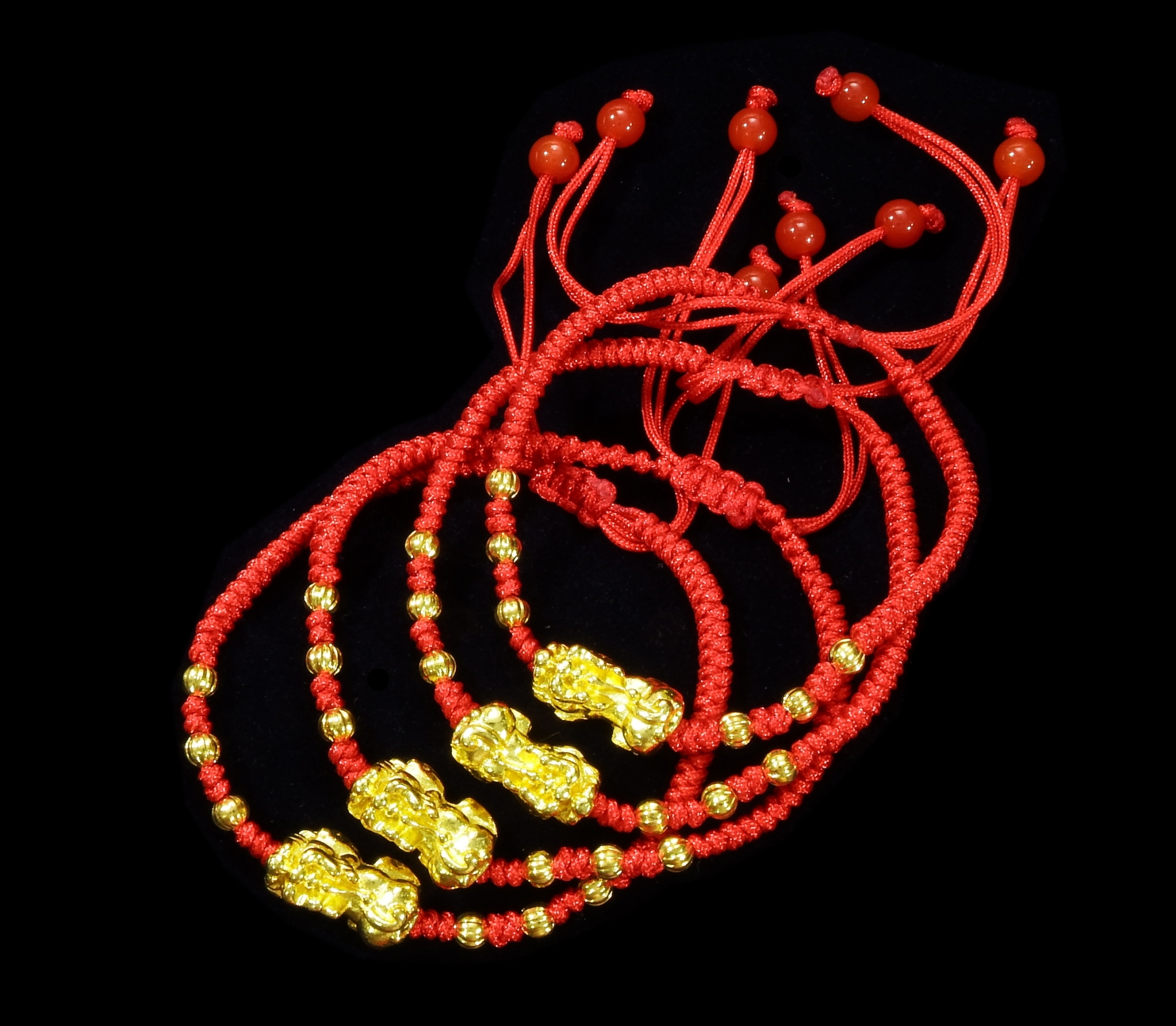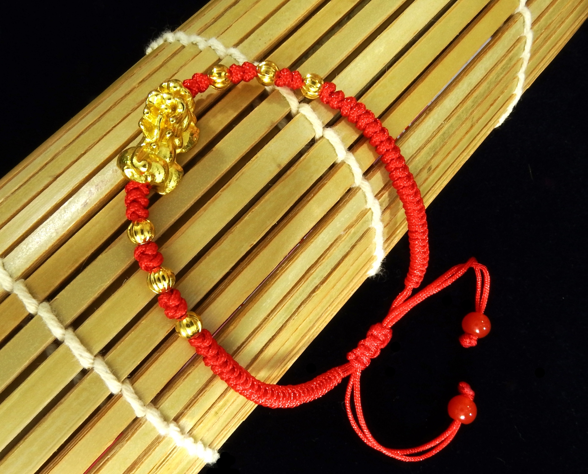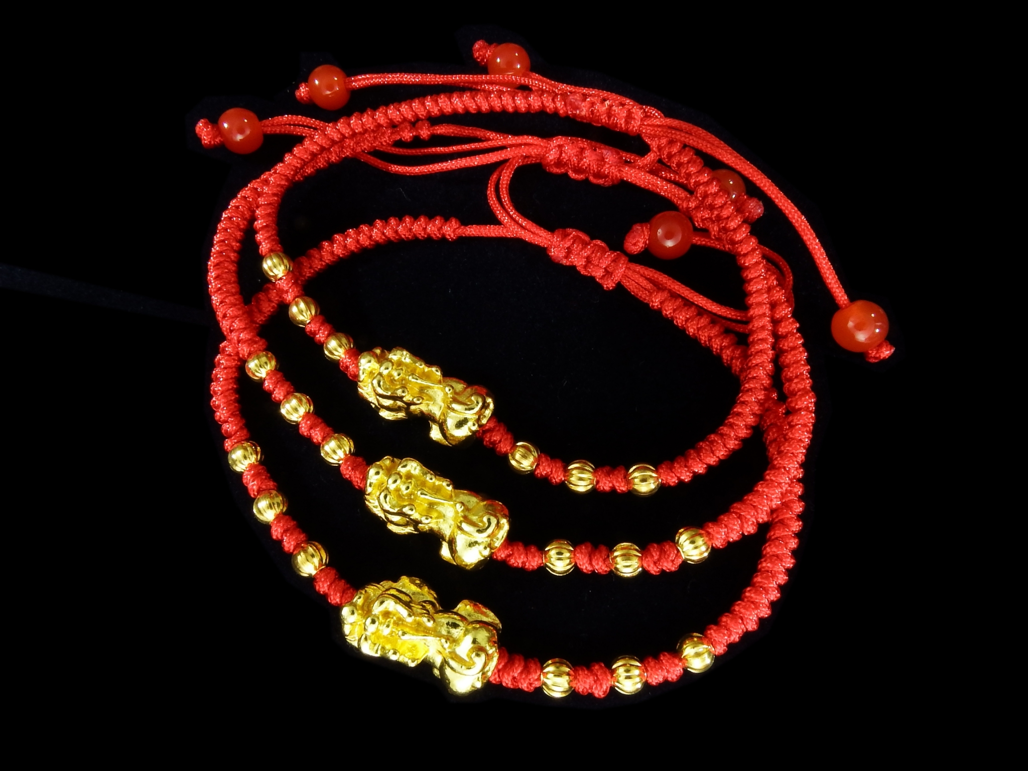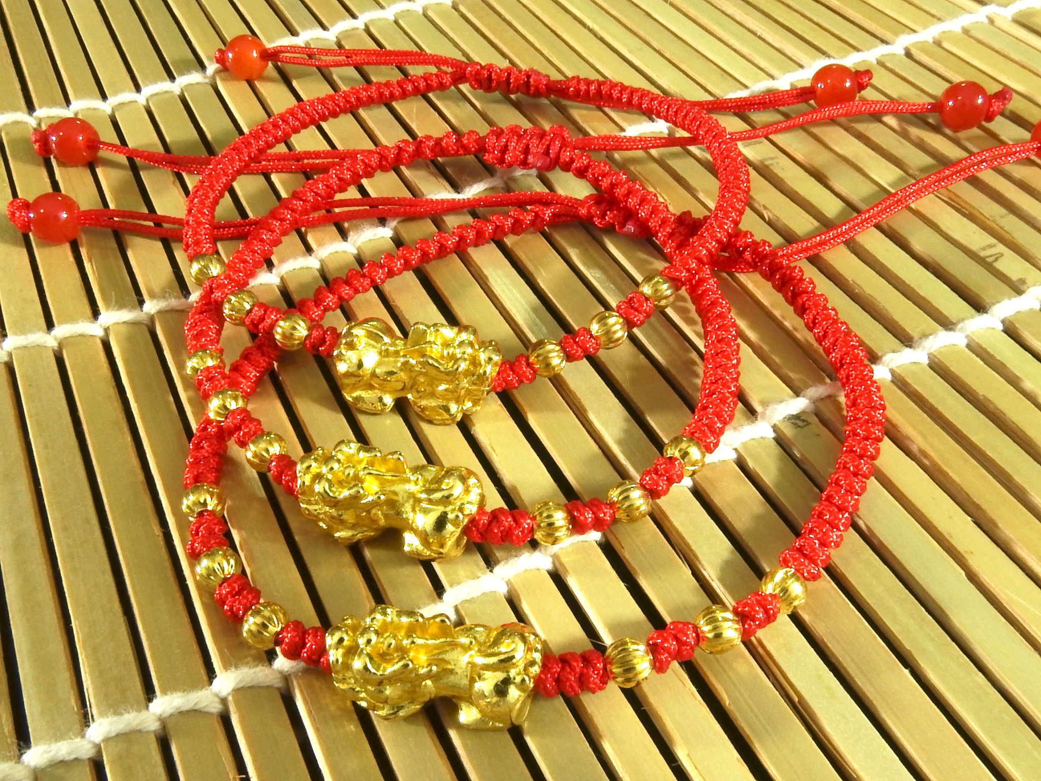 กำไลข้อมือ"ปี่เซี๊ยะ"เชือกแดง ทอง 18k. นำเข้าจากฮ่องกง/พร้อมกล่อง