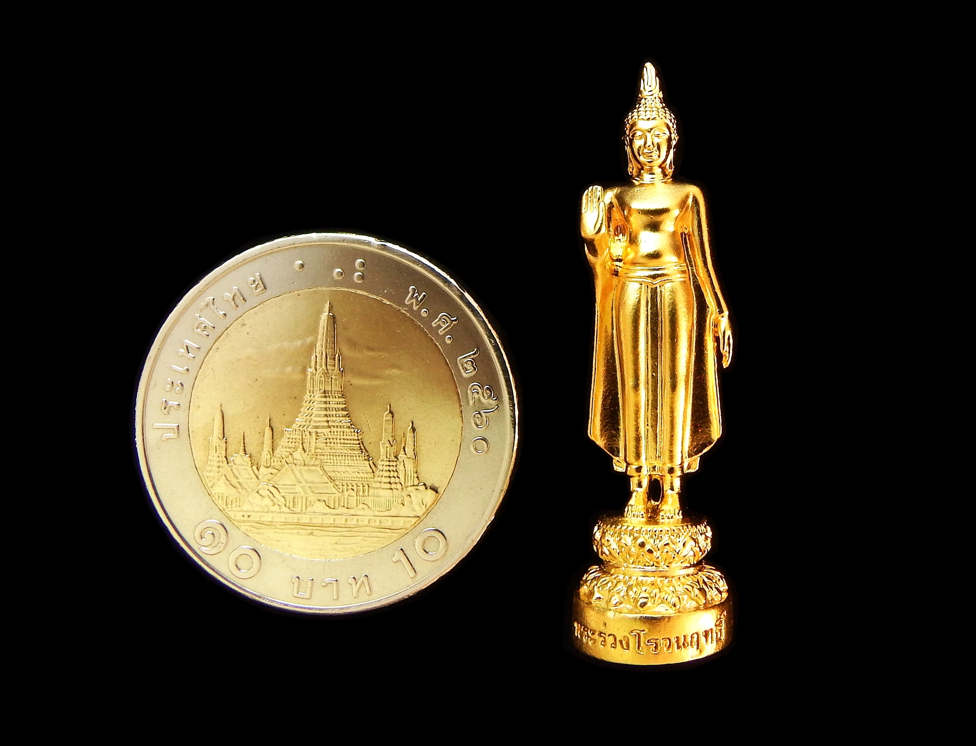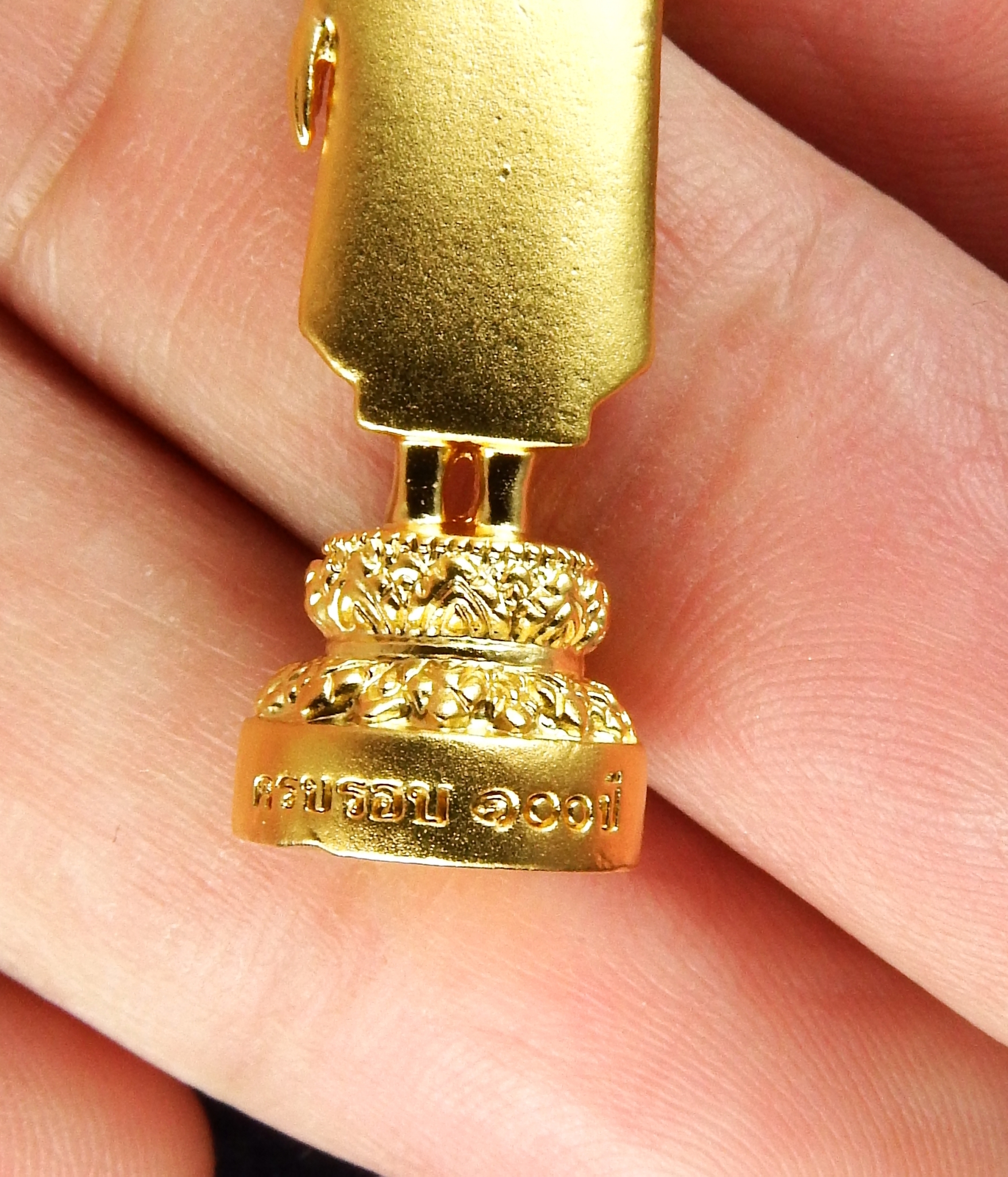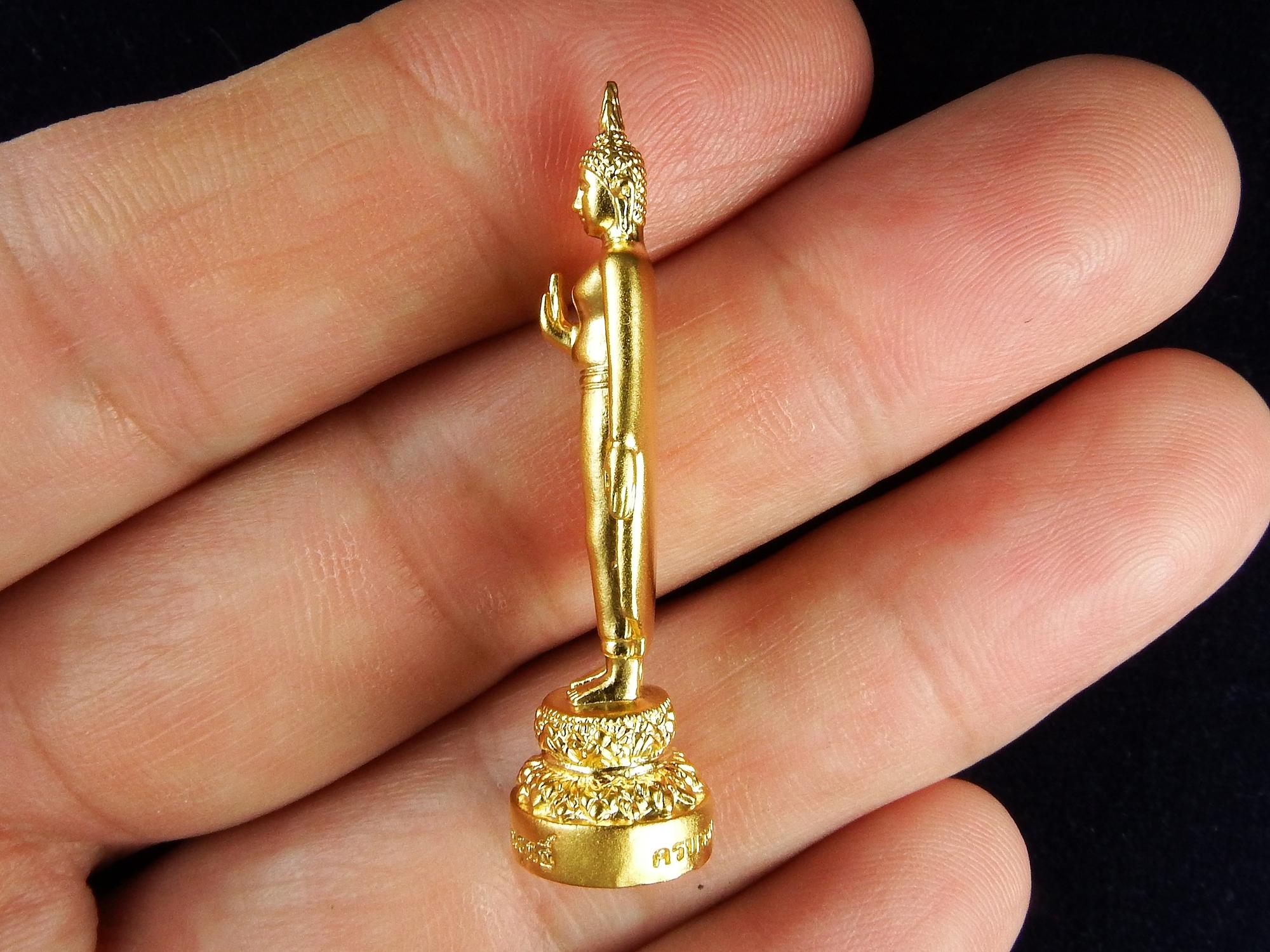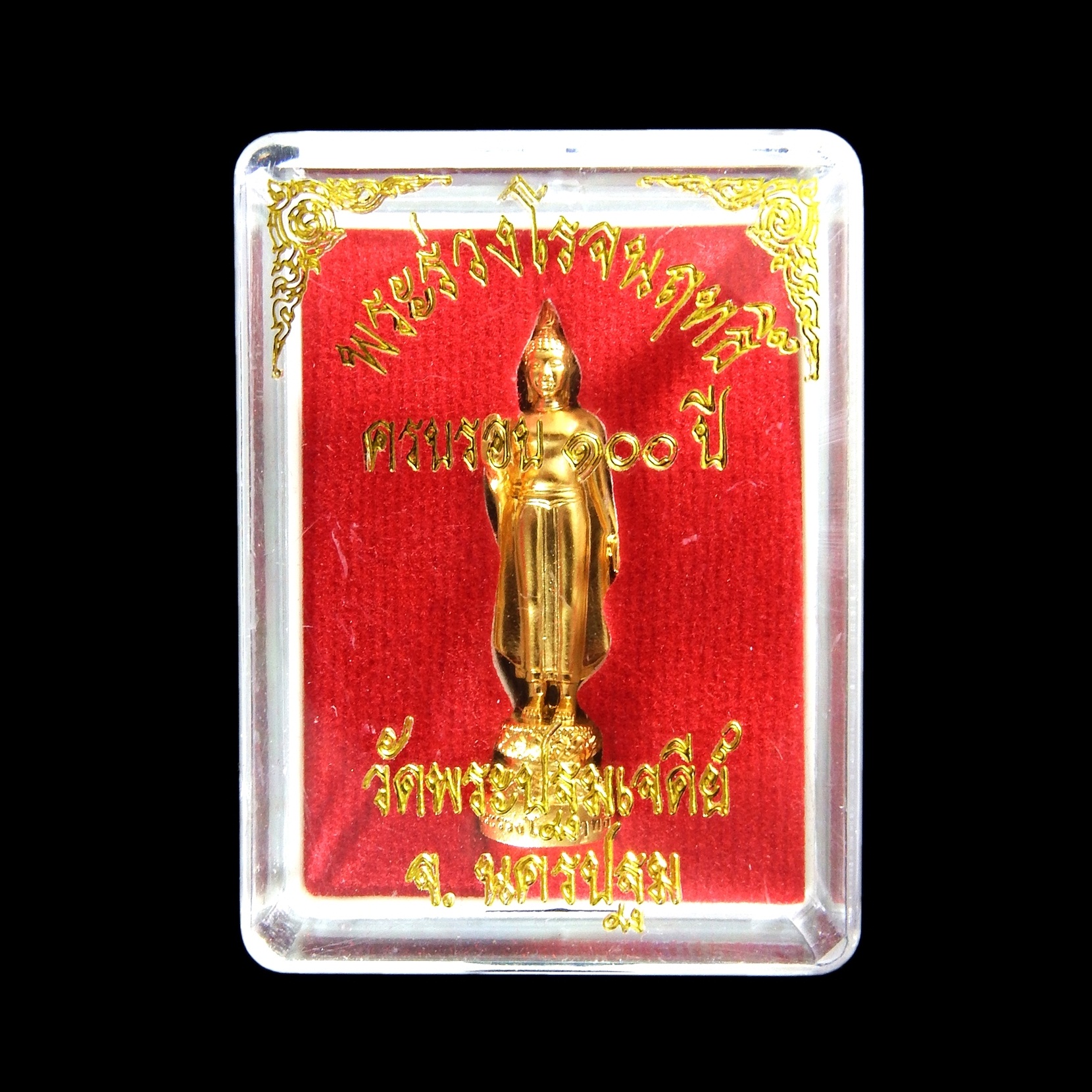 เนื้อทองเหลืองชุบทอง ความสูงจากฐานองค์ประมาณ 4 เซนติเมตร เป็นศิริมงคลแก่ผู้เช่าบูชา จัดสร้างโดย วัดพระปฐมเจดีย์ นครปฐม วันที่ ๒ พ.ย. ๒๕๕๘