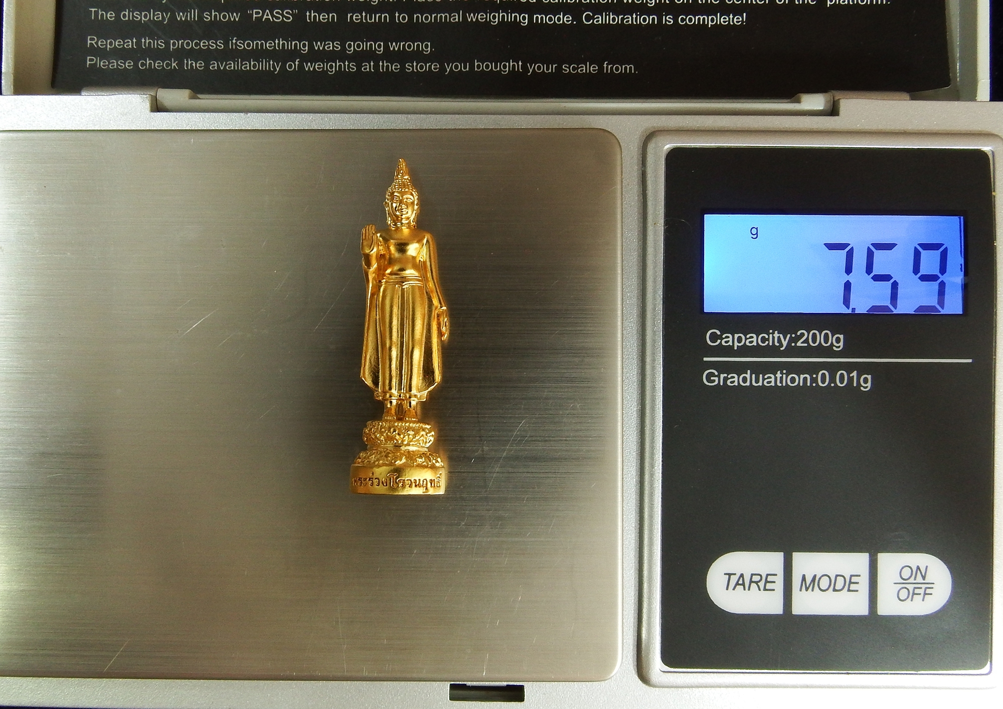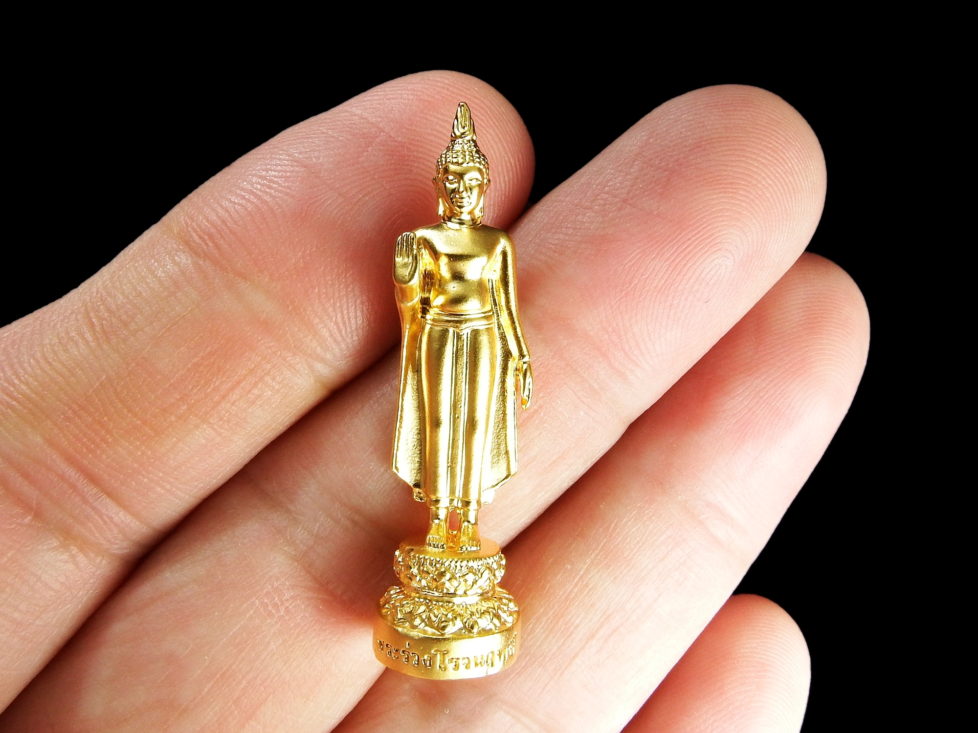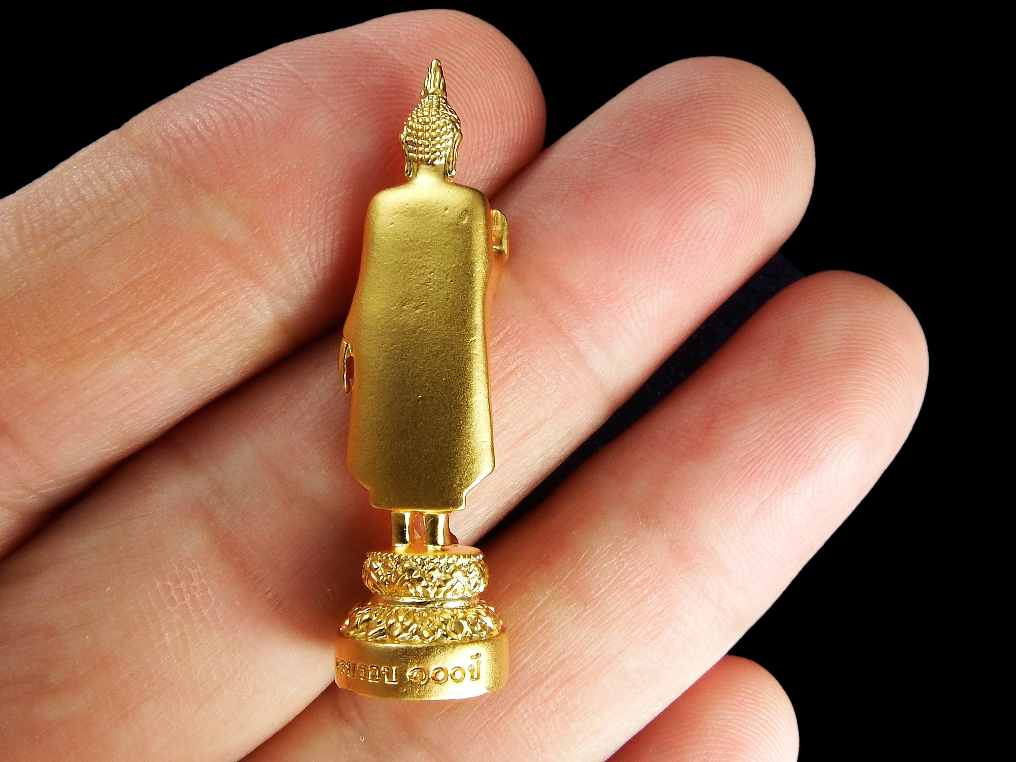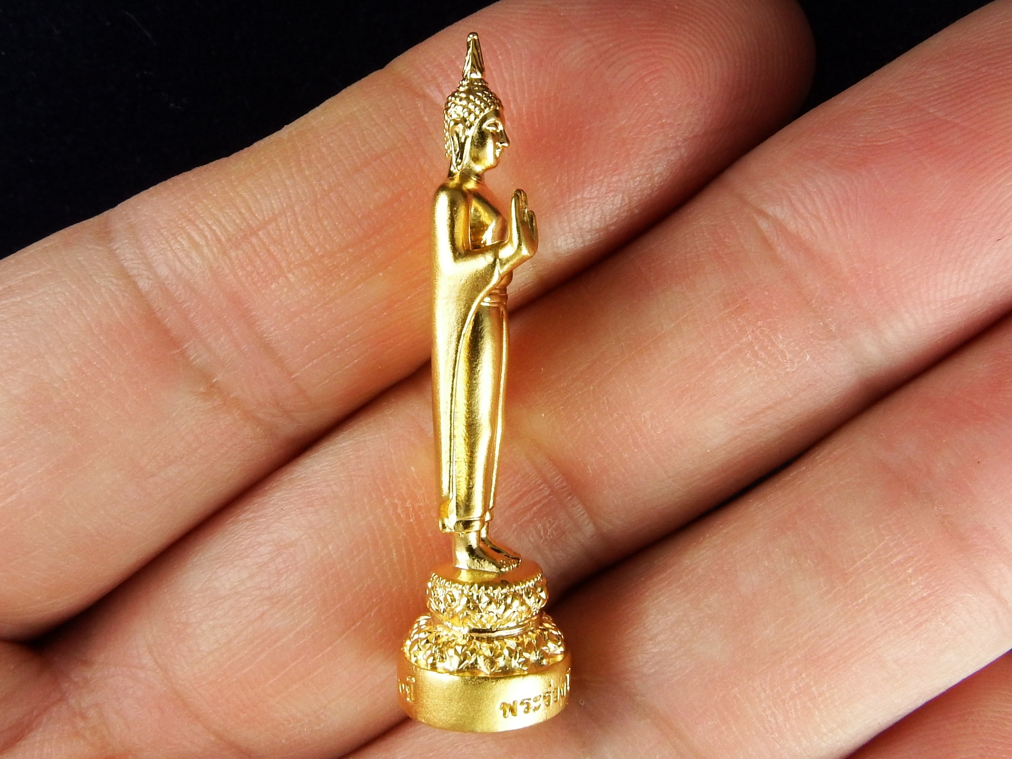 เนื้อทองเหลืองชุบทอง ความสูงจากฐานองค์ประมาณ 4 เซนติเมตร เป็นศิริมงคลแก่ผู้เช่าบูชา จัดสร้างโดย วัดพระปฐมเจดีย์ นครปฐม วันที่ ๒ พ.ย. ๒๕๕๘