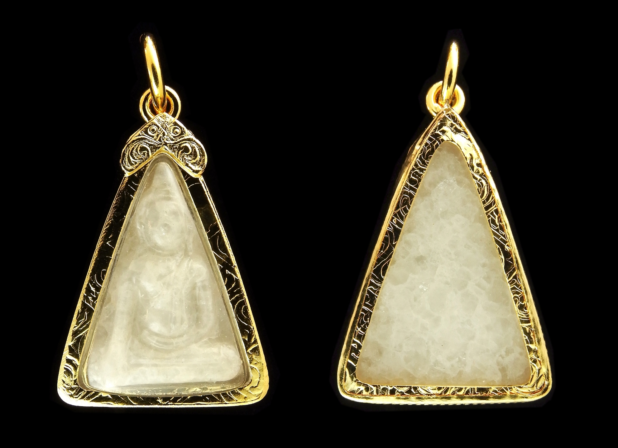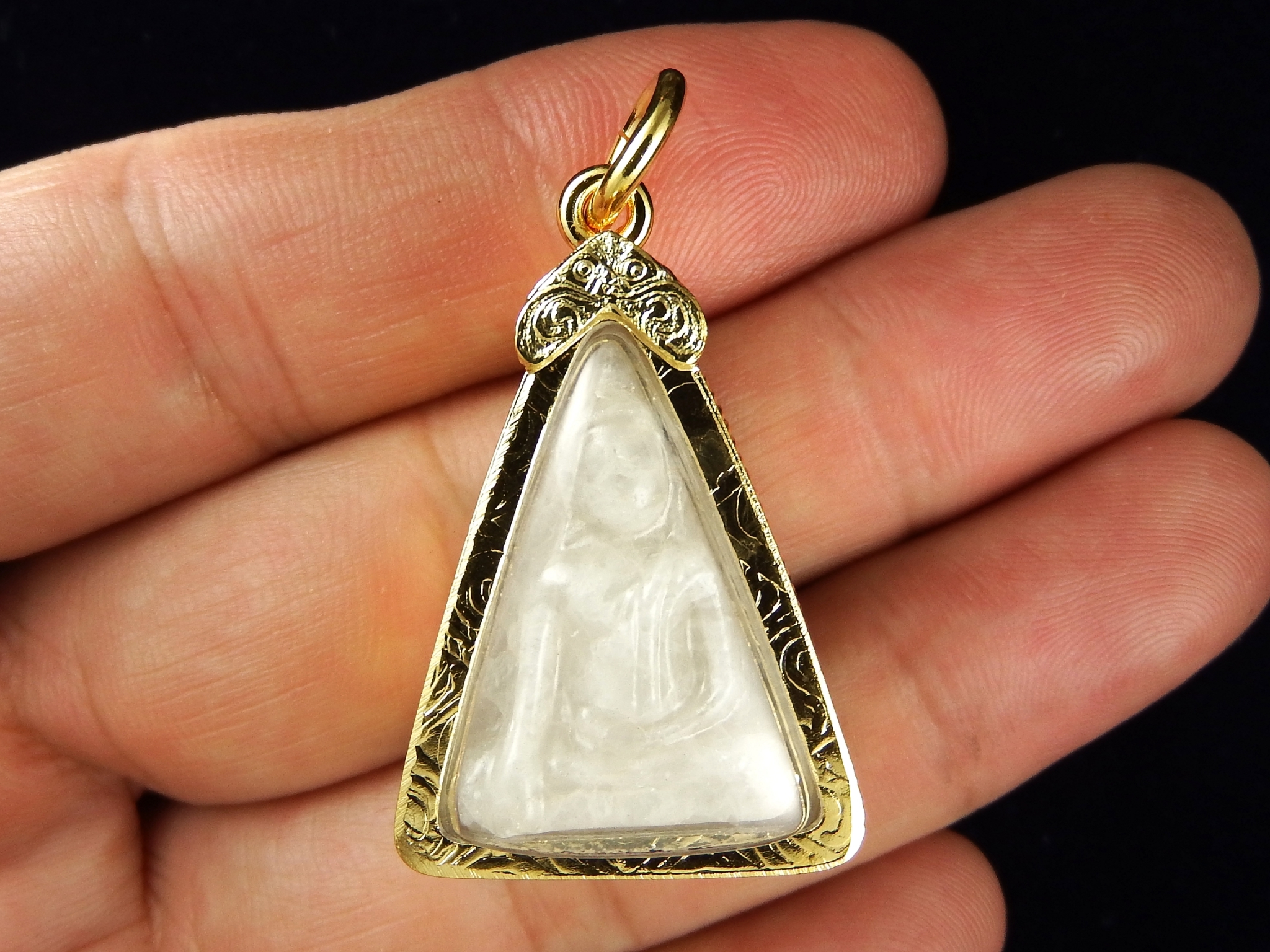 จี้พระแกะสลักจากหยกแท้ เลี่ยมกรอบทองไมครอน
