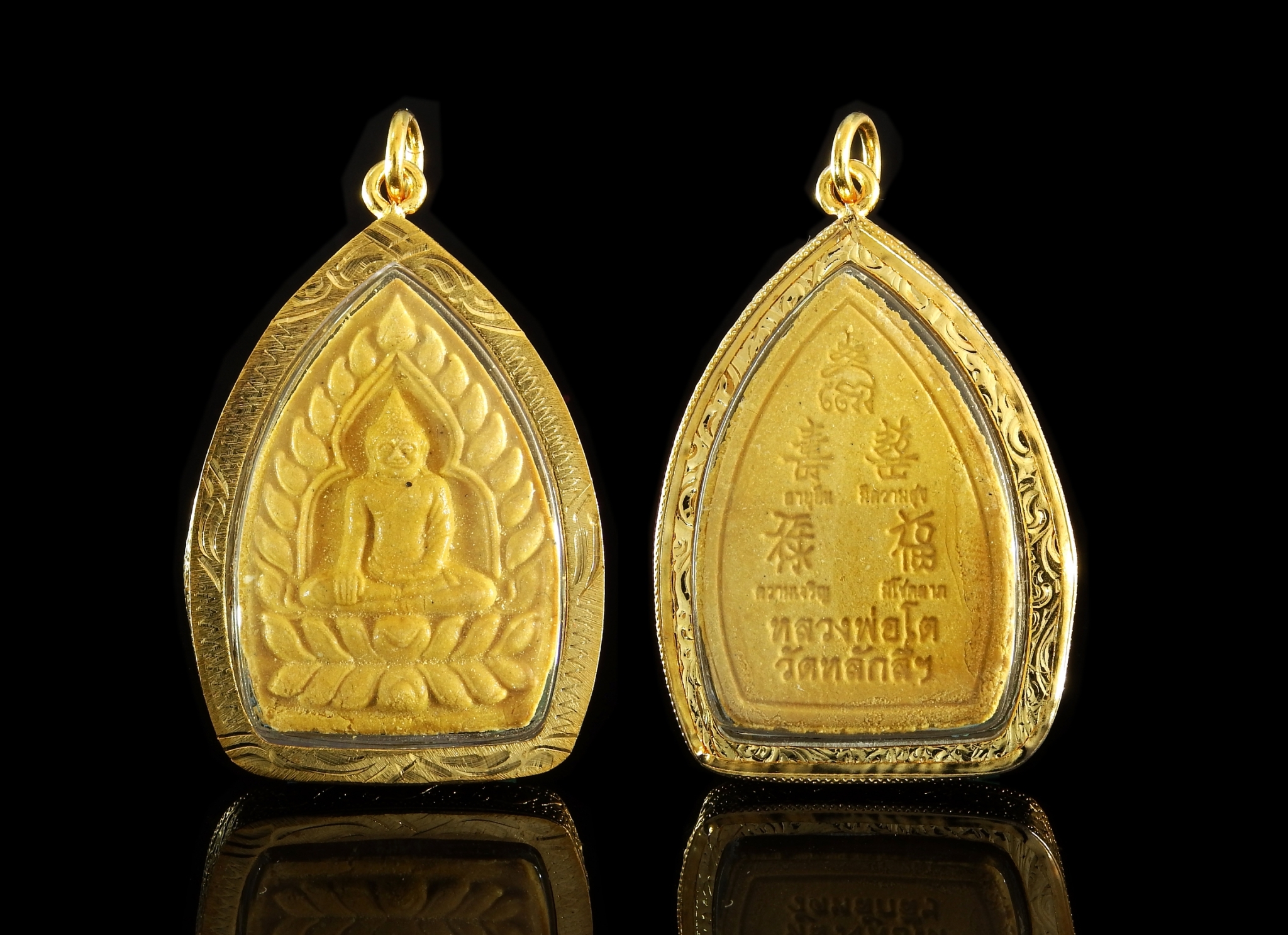 พระเครื่องหลวงพ่อโต วัดหลักสี่ บ้านแพ้ว สมุทรสาคร เลี่ยมกรอบทองไมครอน