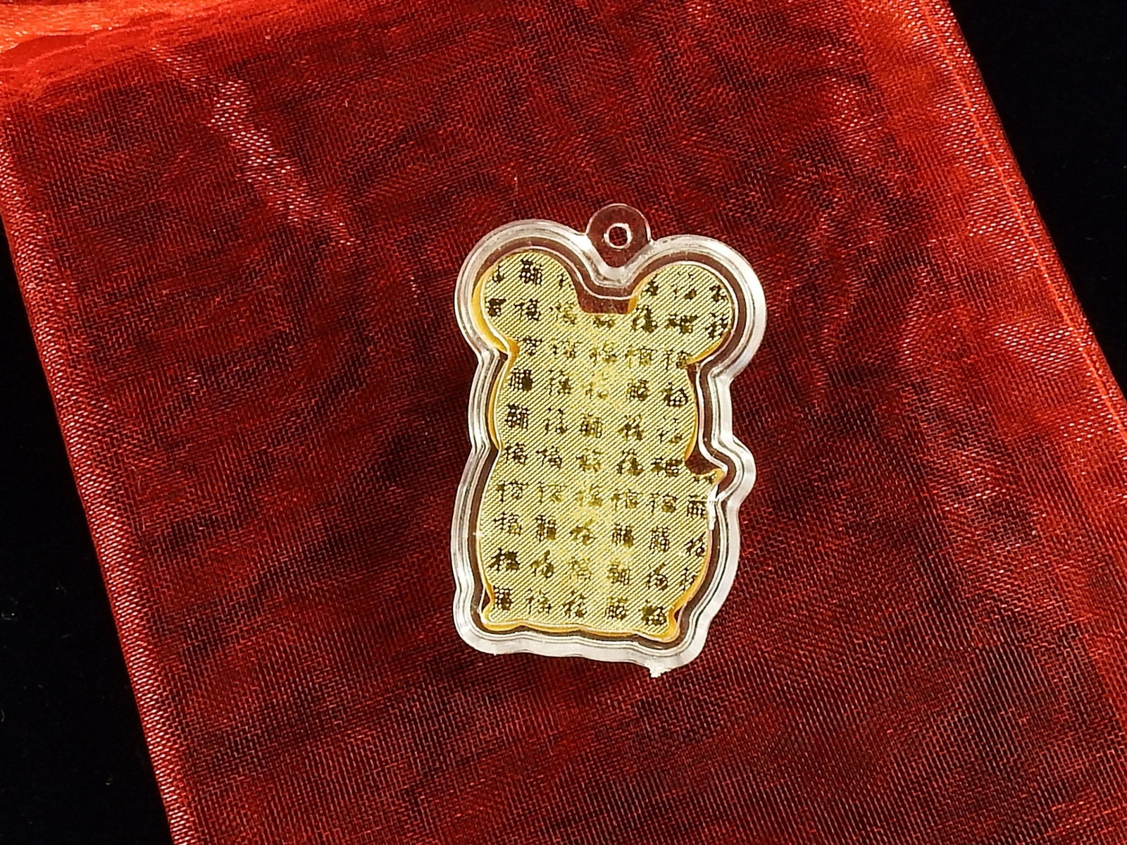 และสำหรับคนที่เกิดปีชง พกติดตัวช่วยเสริมดวง แก้ปีชง วัสดุฟอยล์ทองคำ 24k. ปั๊มลายนูน เคลือบพลาสติก กันน้ำ