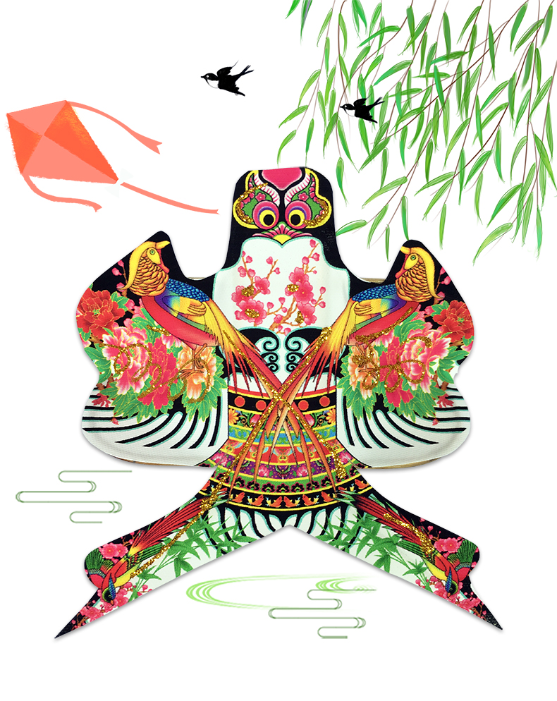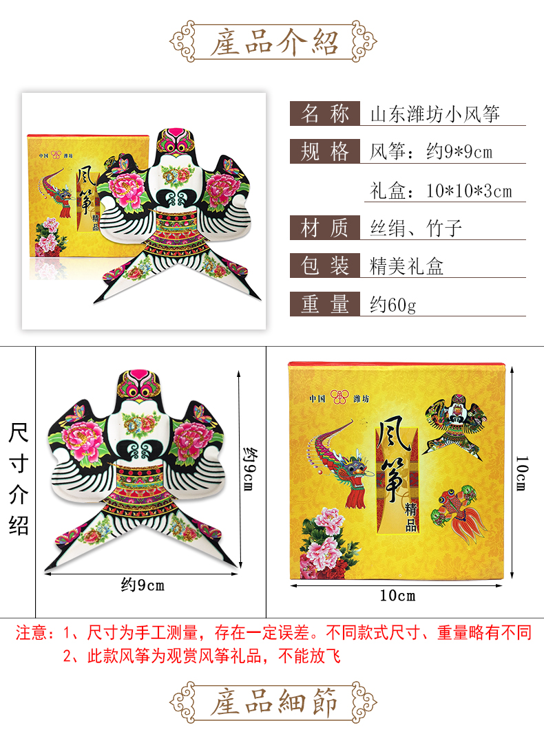 ว่าวจีนโบราณผ้าดิบลายจีนวาดลงสีด้วยมือ ขนาดกล่อง 10x10 cm. /ตัวว่าว 9x9 cm.