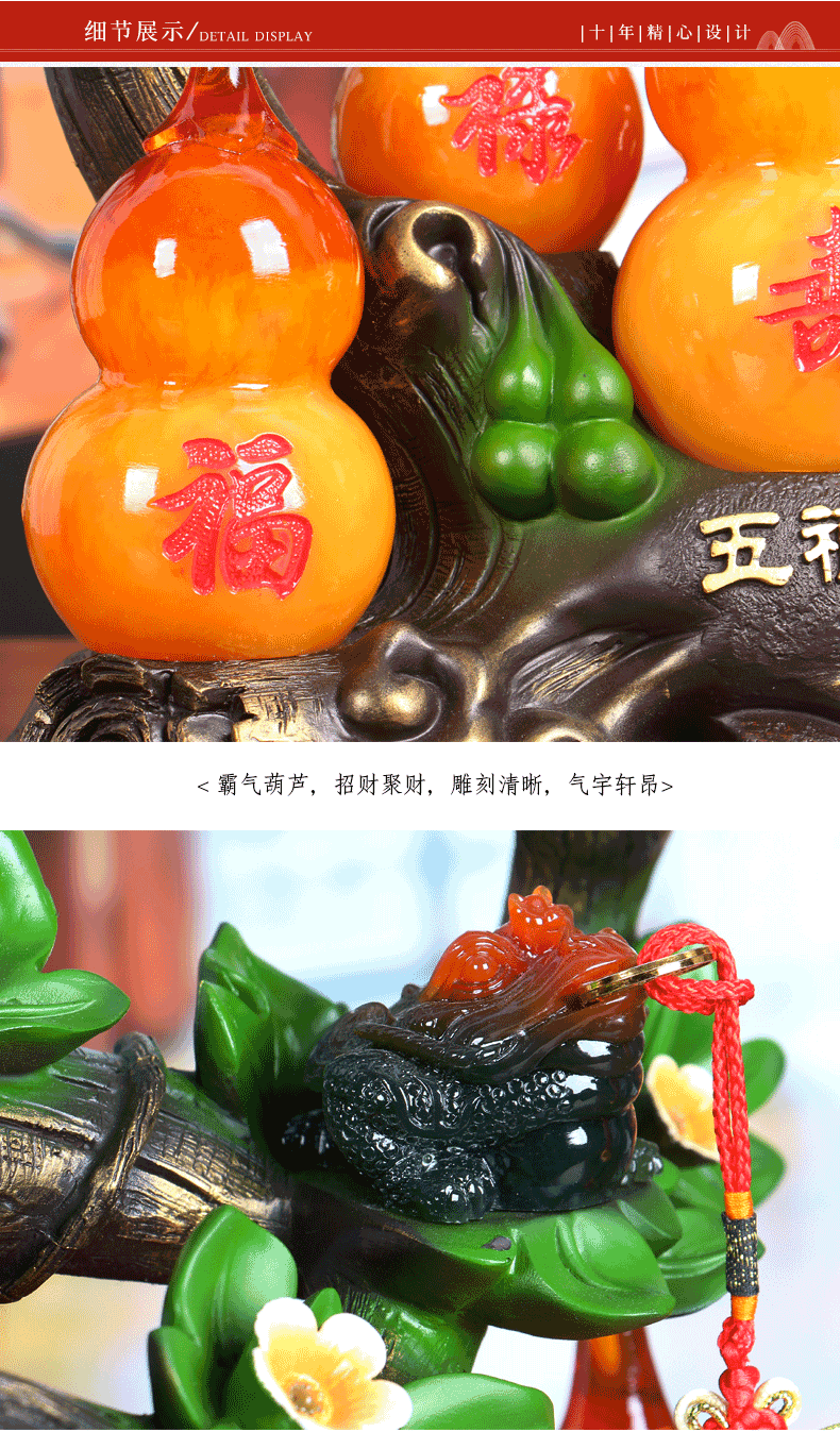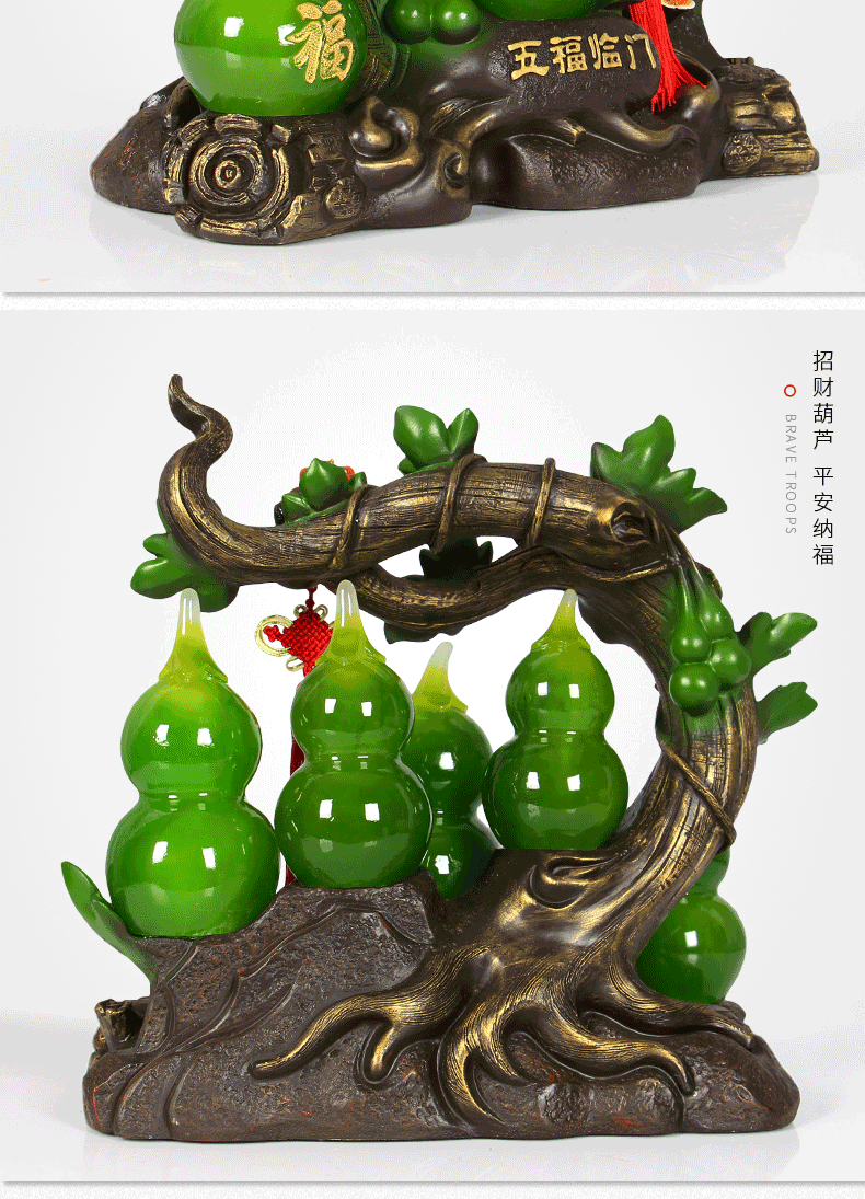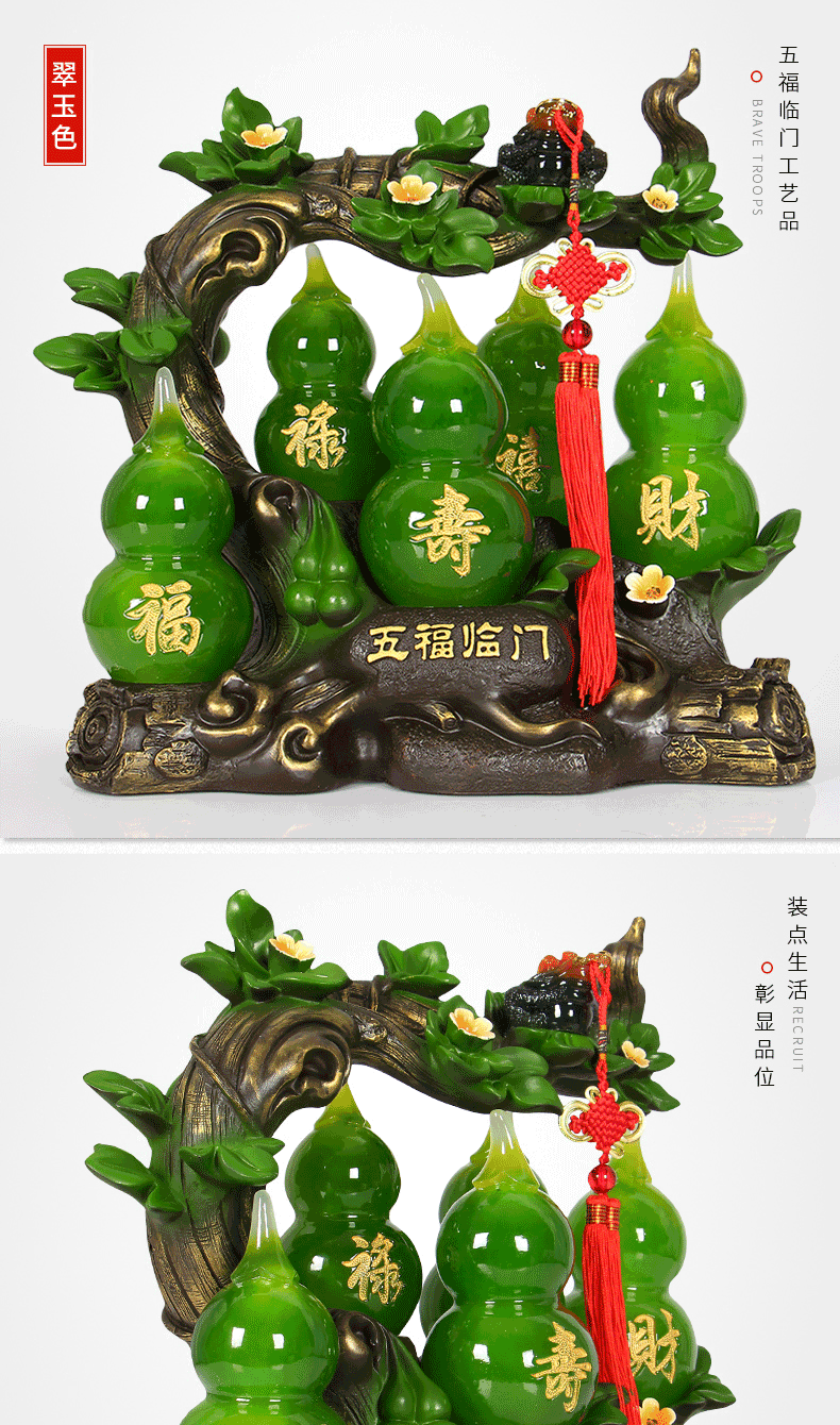 น้ำเต้าหยกเทียม วัสดุทำจากเรซิ่นลงสีเหมือนหยกและไม้จริง สวยงามปราณีต โดยช่างฝีมือชาวจีน