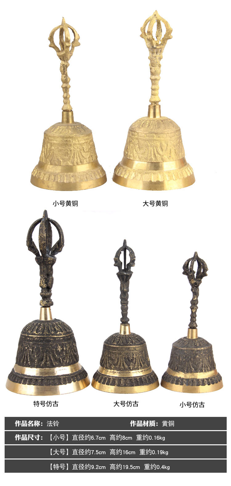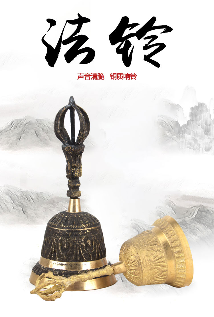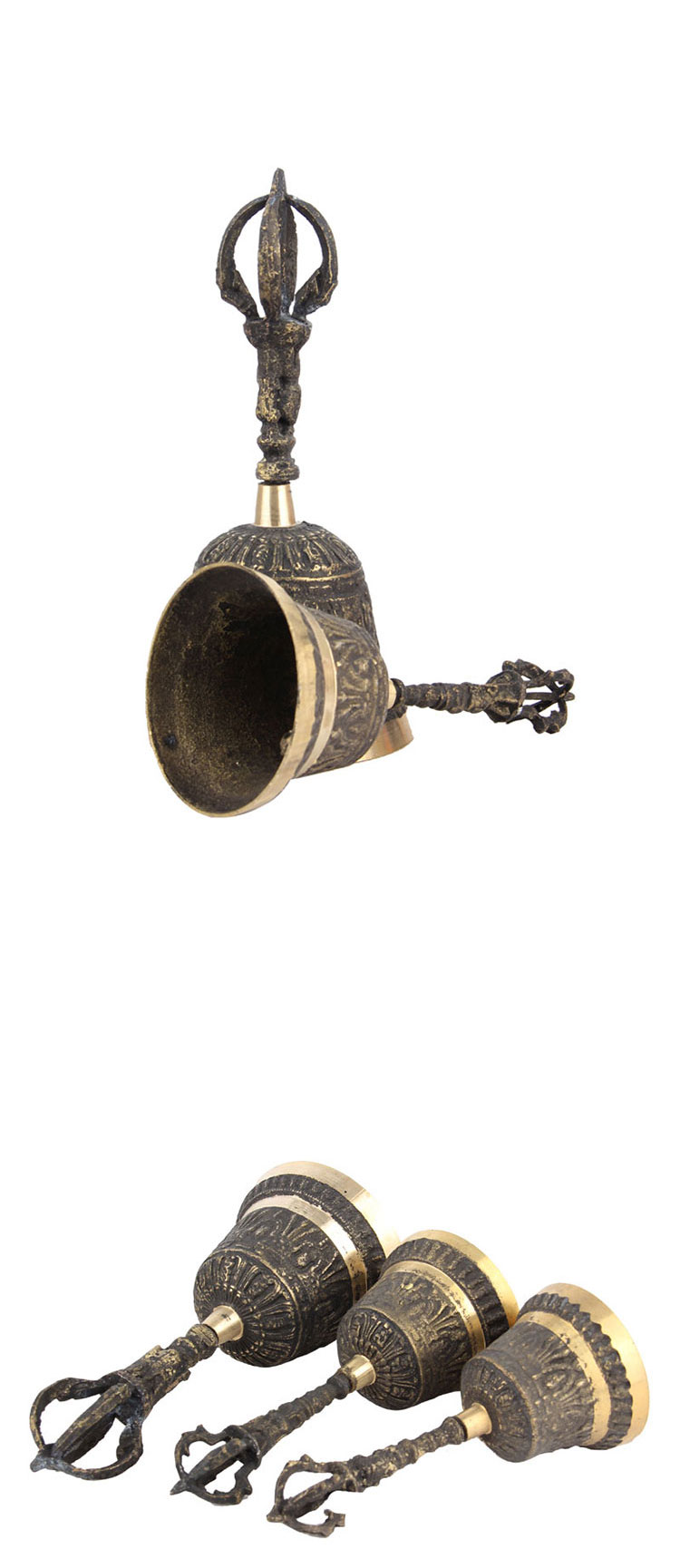 ระฆังทองเหลือง/ทองเหลืองรมดำ สำหรับสวดมนต์ในนิกายวัชรยาน ขับไล่สิ่งชั่วร้าย