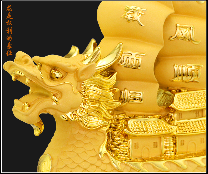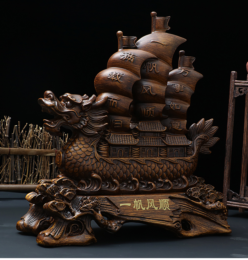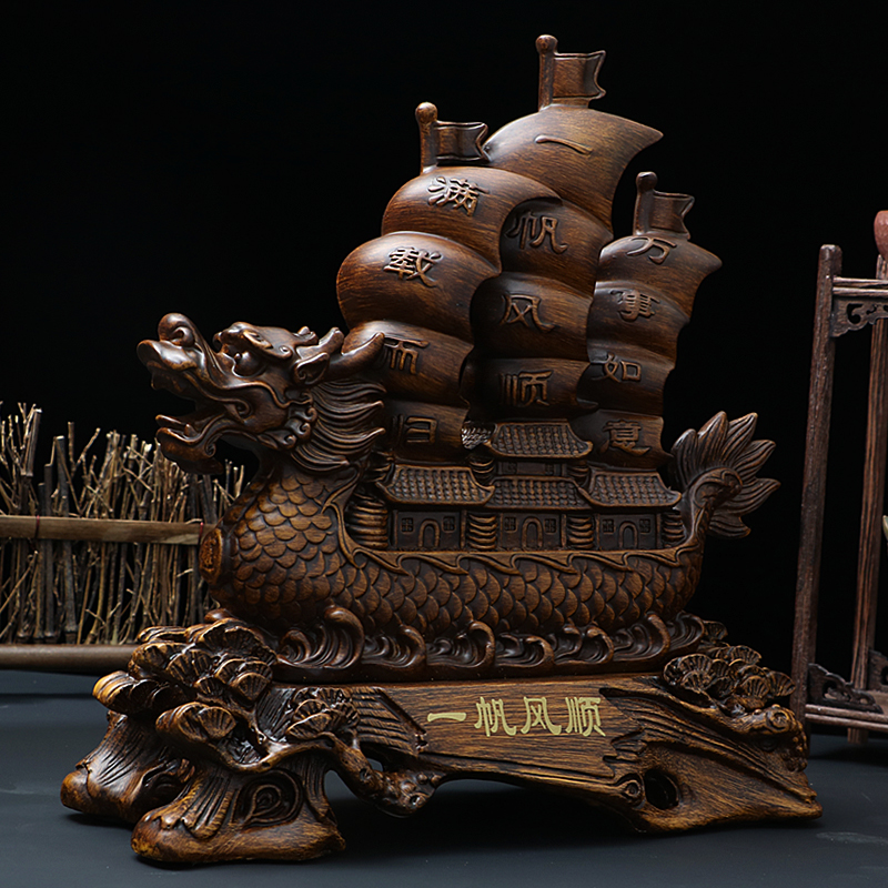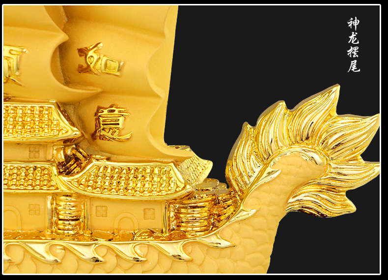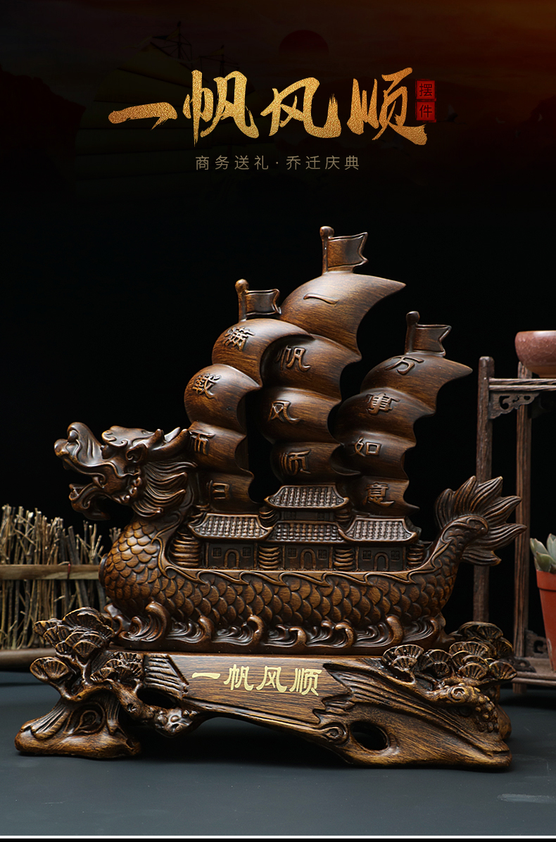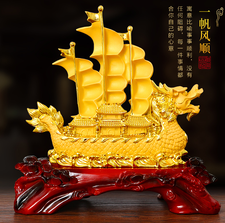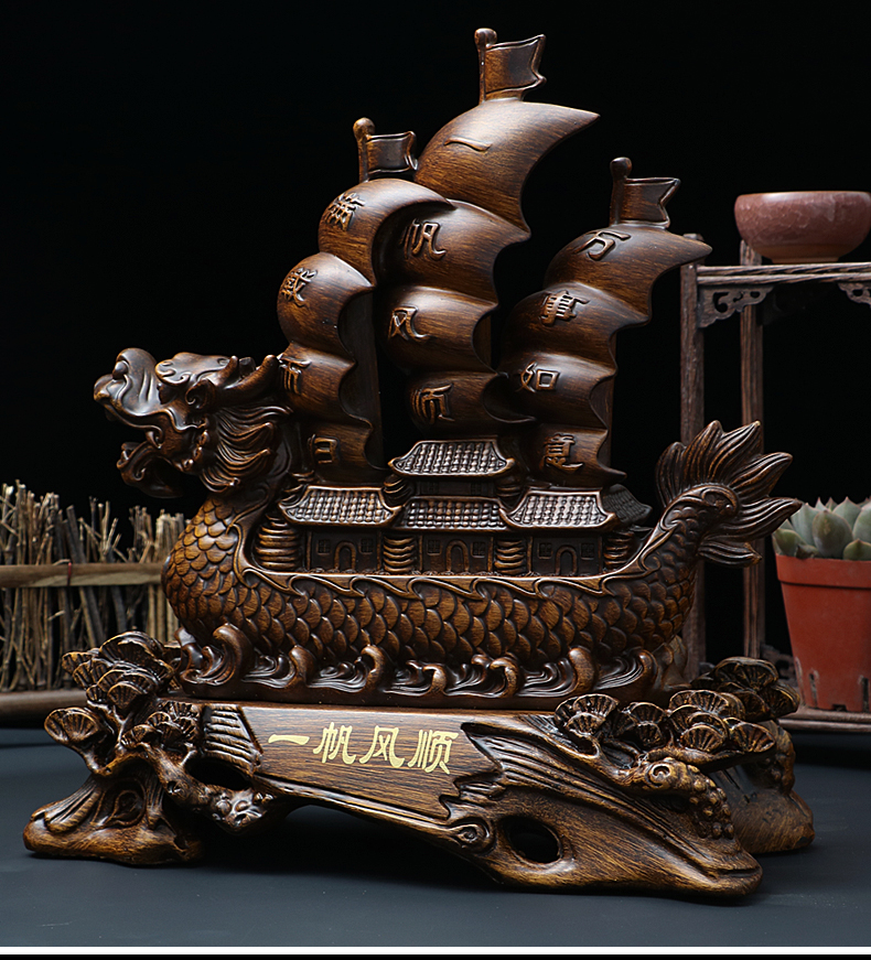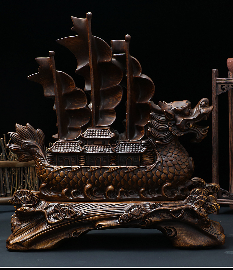 เรือสำเภามังกร วัสดุเรซิ่นผสมสีลายไม้และทองคำ สวยงามตามหลักฮวงจุ้ย
