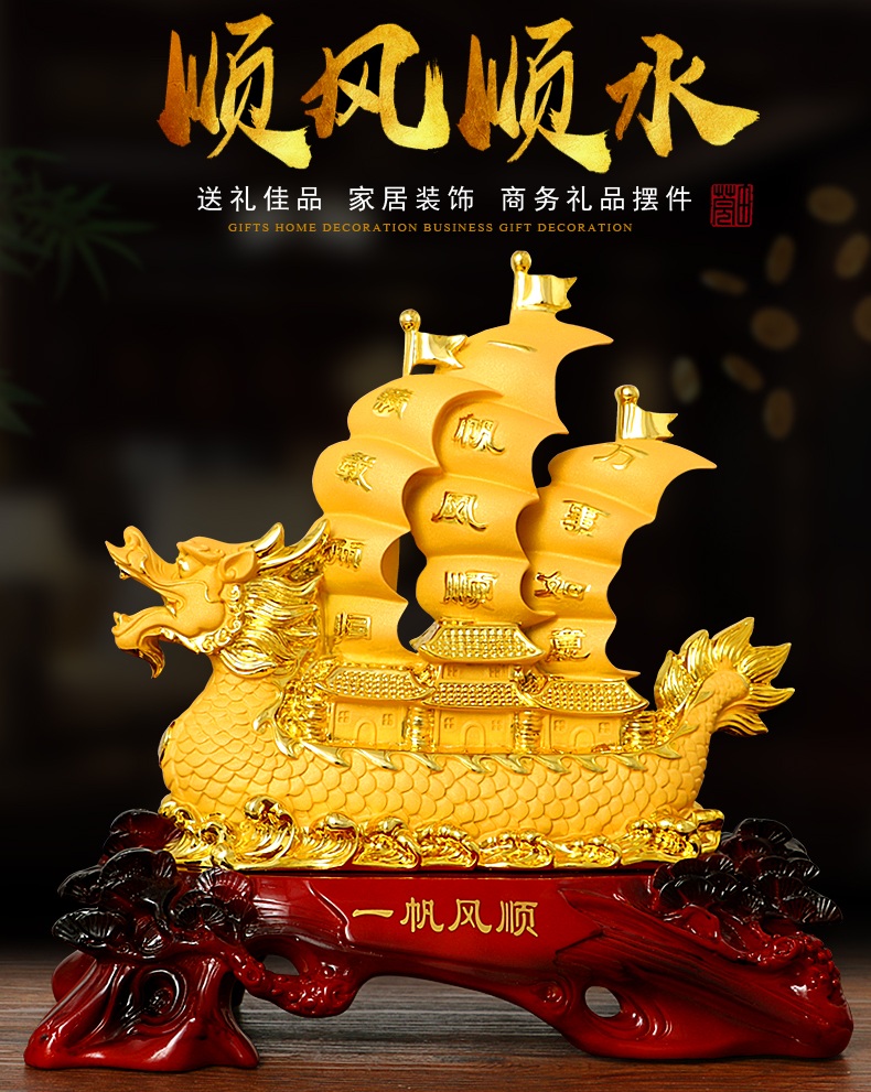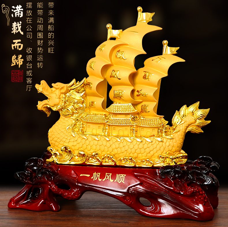 เรือสำเภามังกรนำโชคลาภเงินทอง เสริมมงคลการค้าขายดีมีกำไร