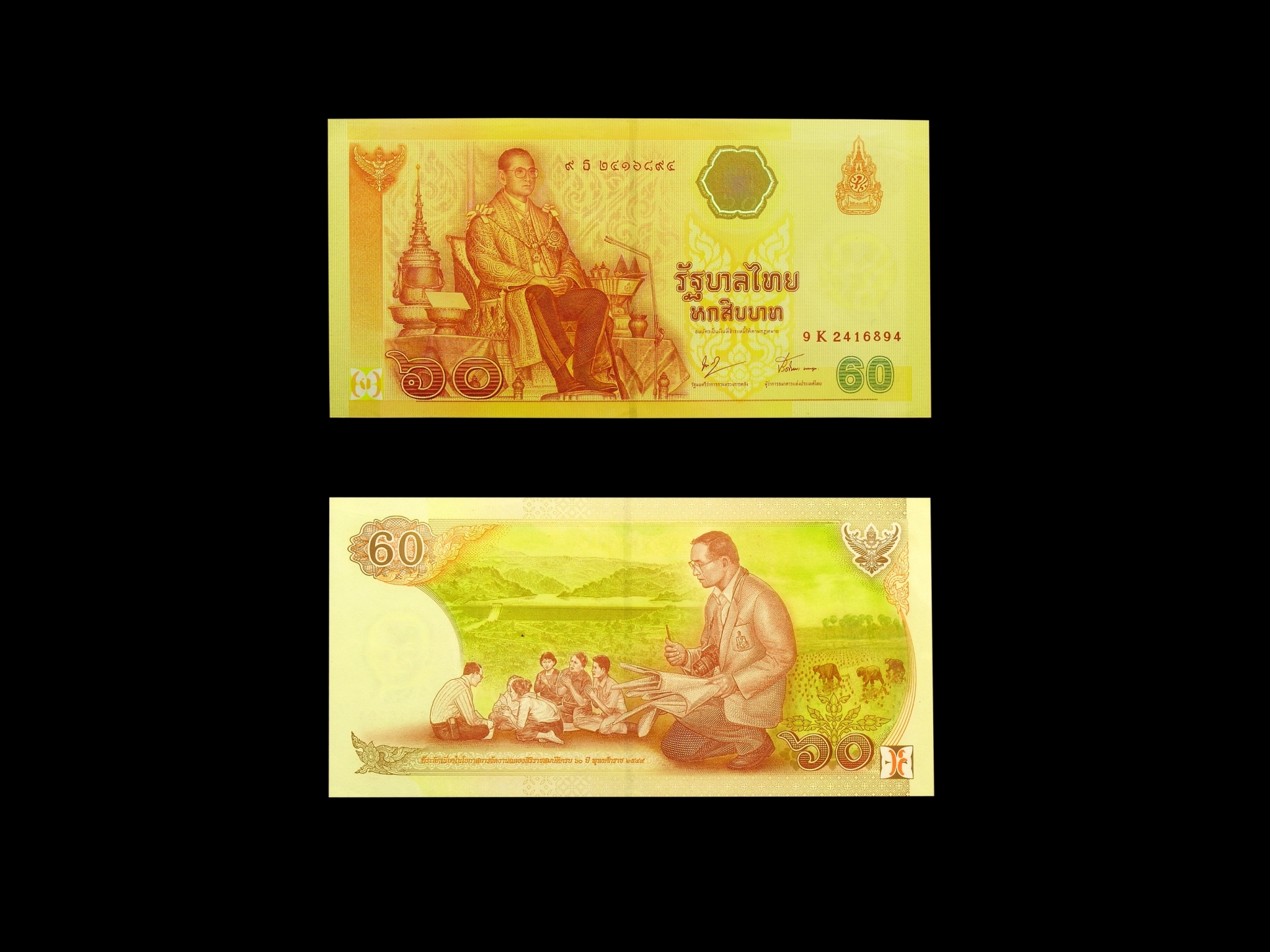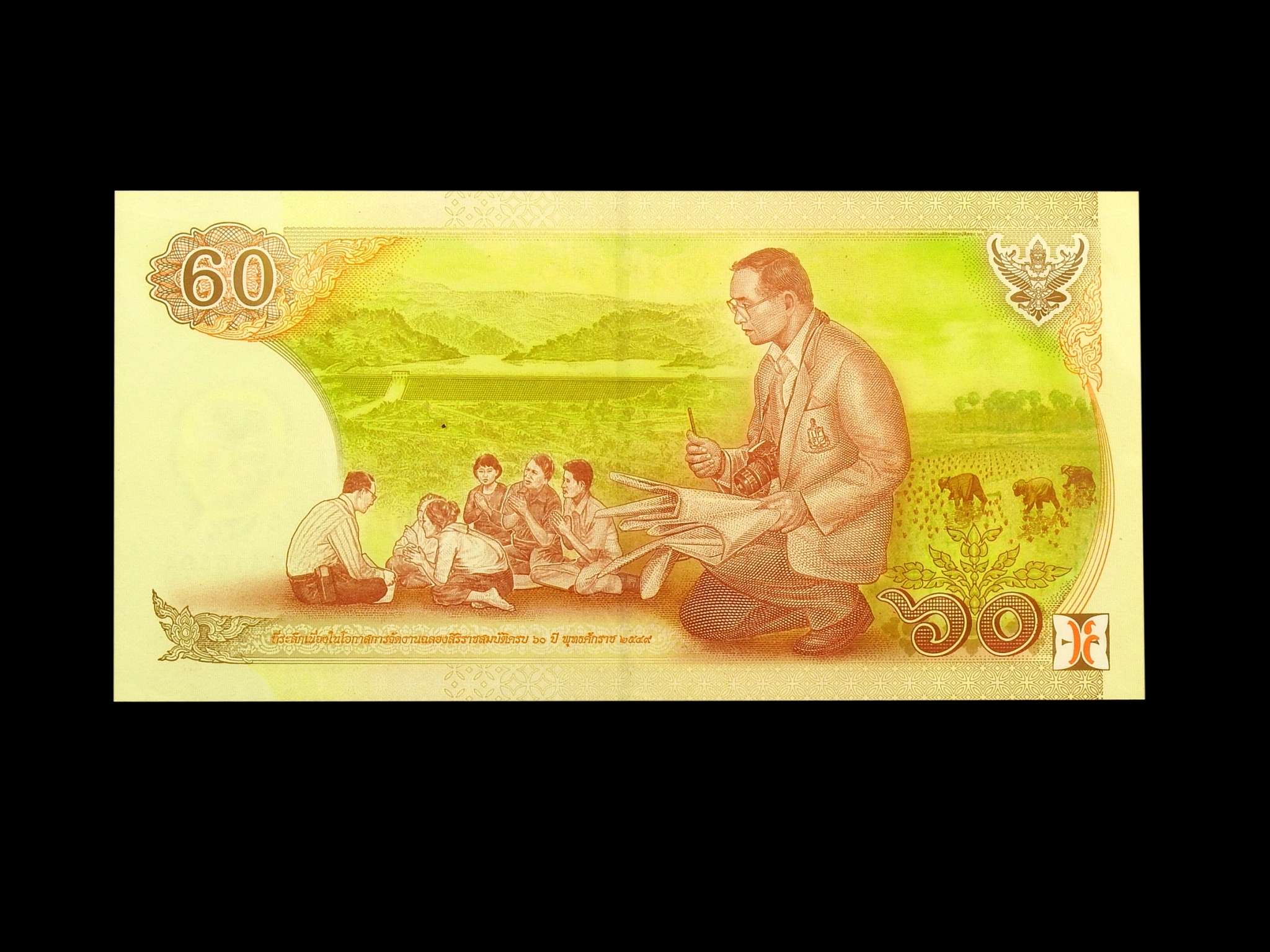 ธนบัตรที่ระลึก ๖๐ บาท เนื่องในโอกาสฉลองสิริราชสมบัติครบ ๖๐ ปี ๗ มิถุนายน ๒๕๔๙