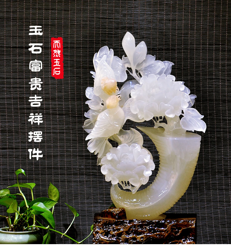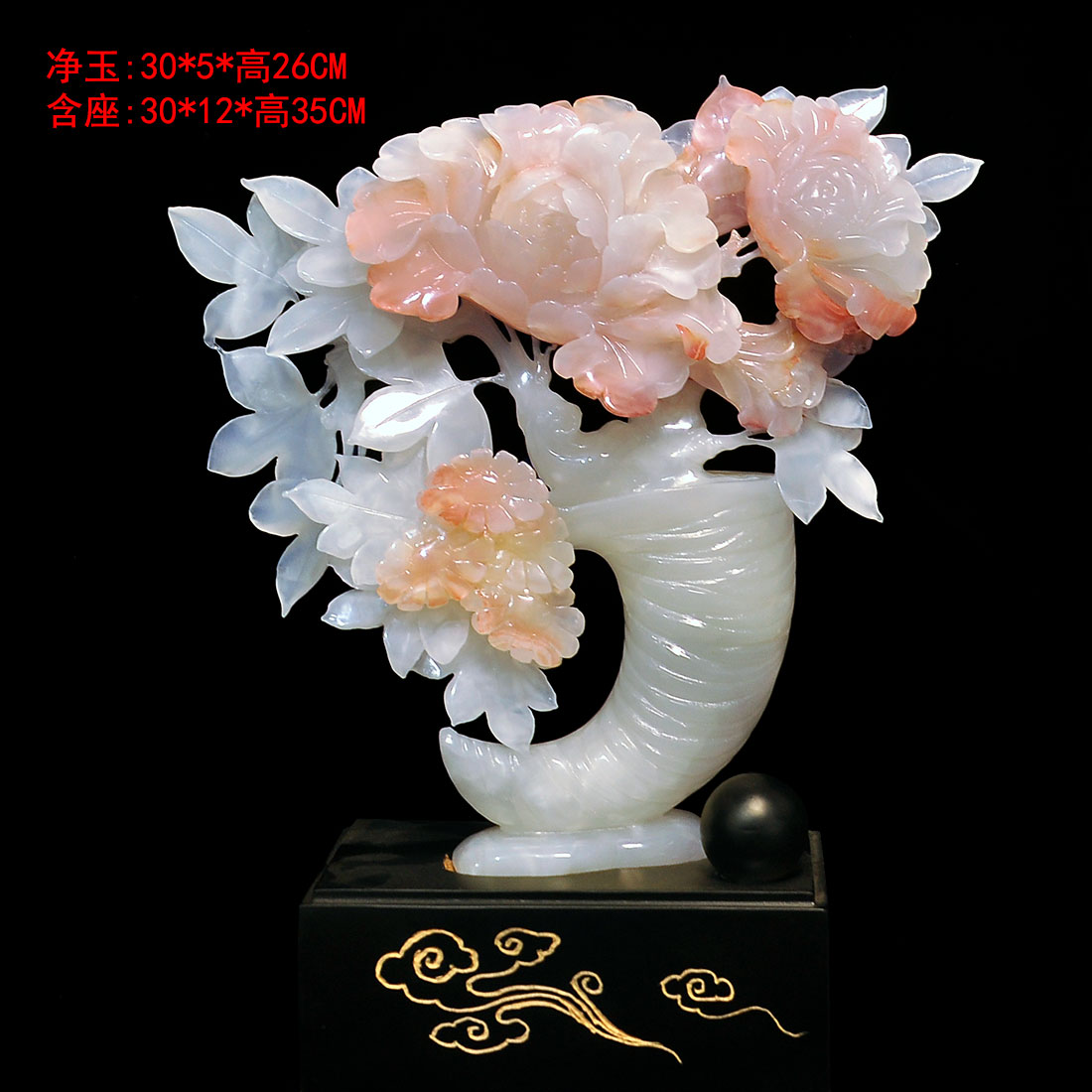 โบตั๋นหยกแท้ แจกันดอกโบตั๋นแกะจากหยกธรรมชาติแท้ โดยช่างฝีมือชาวจีน