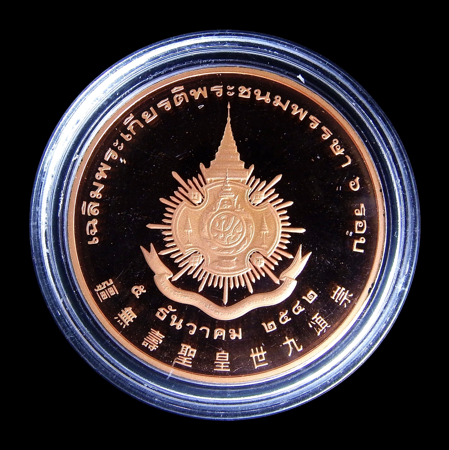 เหรียญเฉลิมพระเกียรติในหลวงครบ 6 รอบ สมาคมชาวไทยเชื้อสายจีน จัดสร้าง เนื้อทองแดงขัดเงา